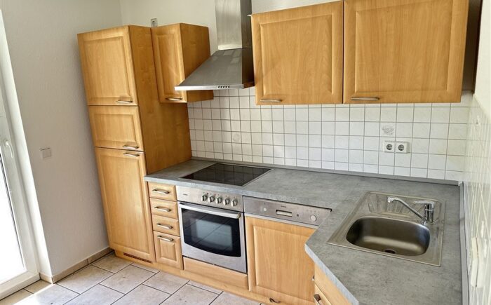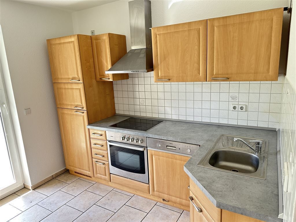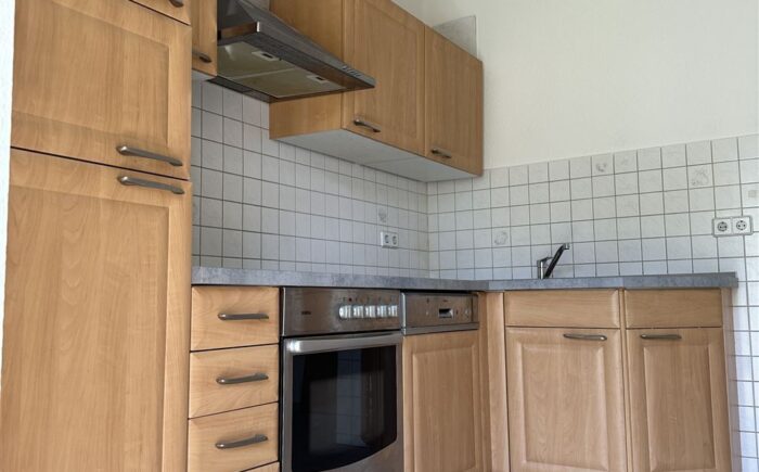 Die Küche befindet sich auf der sonnigen Südseite des Hauses und ist funktional geschnitten. Die Einbauküche wurde kürzlich durch den Vermieter stilvoll überarbeitet und präsentiert sich in einem gepflegten, zeitgemäßen Zustand.